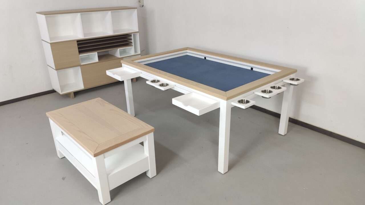 No sólo fabricamos mesas especiales para juegos sino también otro tipo de mobiliario. Elige la composición, el diseño, color y modelo que más te guste e indícanos las modificaciones que necesitas. Nuestro departamento técnico estudiará su viabilidad y, si es posible, te la fabricamos con total garantía de calidad.